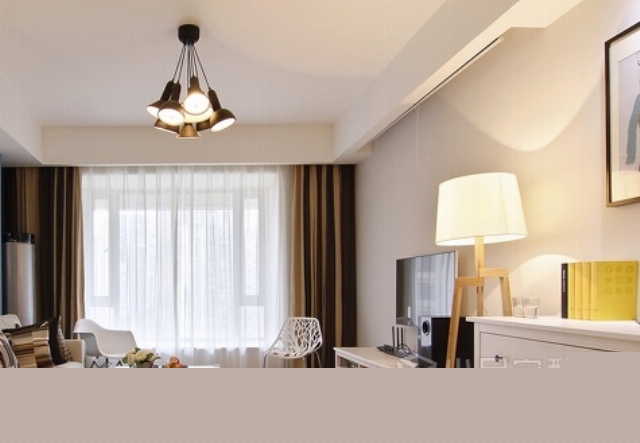 這套房子的格局略呈長(zhǎng)型,設(shè)計(jì)師良好運(yùn)用硬體條件及調(diào)整室內(nèi)格局,使生活空間達(dá)到最佳的配置,為不浪費(fèi)優(yōu)美的風(fēng)景,特意將客餐廳連結(jié)成氣,讓偌大的窗景,成為屋內(nèi)的視覺焦點(diǎn)。家裝家具一體價(jià):18萬。