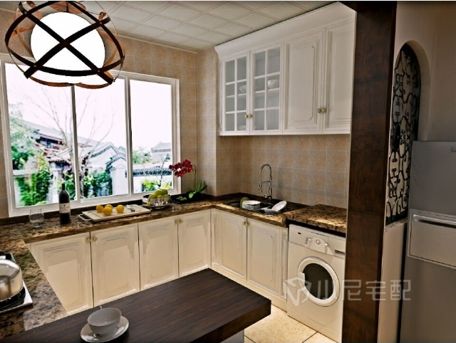 毛坯房是沒有留洗衣機(jī)位的,這個(gè)戶型廚房過于大,而衛(wèi)生間又過于小,所以合理利用空間把洗衣機(jī)改造到廚房里面來
