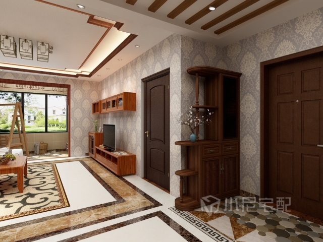 玄關處的鞋柜既增加了裝飾效果,又體現(xiàn)出了實用功能