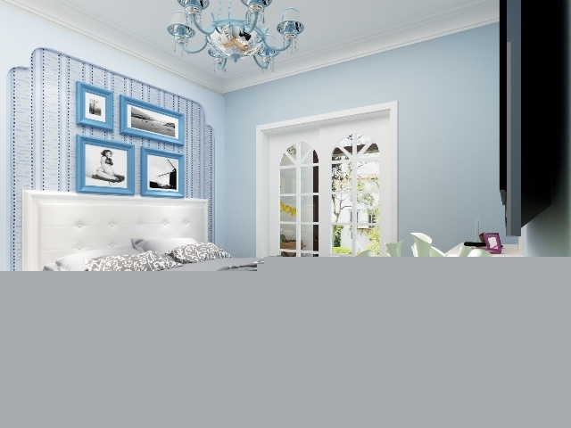 從窗口看過去,臥室刷淡藍色的氫氣,有一種活力的釋放