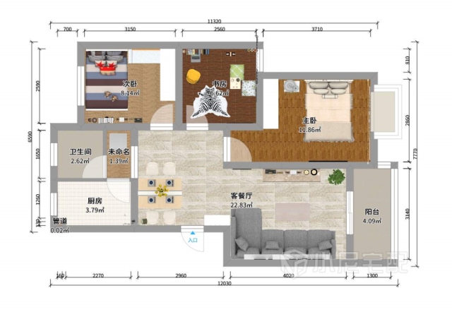 89.9㎡#三室兩廳一衛(wèi)#混搭
